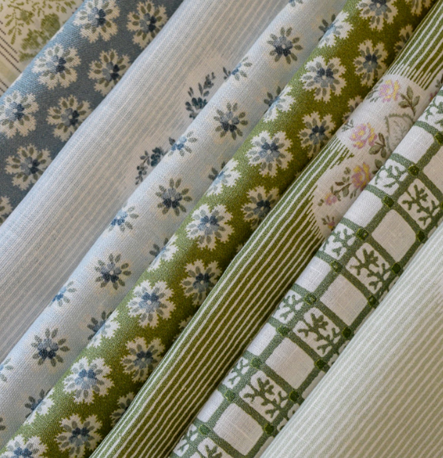 Inspired by an 18th Century French fabric sample book, which would have originally been wielded by fabric merchants to showcase their offerings, these designs find a home in settings more provincial than the chic confines of Parisian grandeur. Crafted from modest cotton and calico, textiles meant for the everyday abode, the designs have a strikingly contemporary allure, both in their style and colour palettes. We have lovingly reinvigorated these patterns, reshaping scale, repeat, and hues to suit the present, while paying homage to their enduringly modern essence.